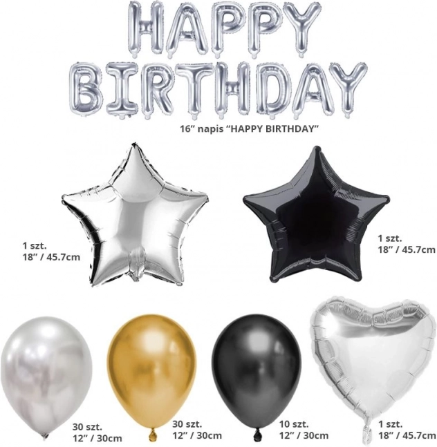 Gimtadienio balionų rinkinys suteiks šventei išskirtinę atmosferą ir sukurs nepamirštamą įspūdį visiems dalyviams. Puikiai tinka šventėms tiek namuose, tiek lauke!