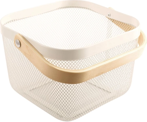 Stilingas baltas vaisių krepšelis iš metalinio tinklo su medine rankena – praktiškas virtuvės ir valgomojo akcentas. Užtikrina, kad švieži užkandžiai visada būtų po ranka, pabrėžia elegantišką interjero išvaizdą, o atvira konstrukcija padeda vaisiams ir daržovėms geriau vėdintis. Jis lengvas nešti, lengvai valomas ir nesugeria kvapų.