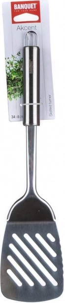 Kiaurymėta vartymo mentelė Banquet Akcent – idealus įrankis patogiam maisto apvertimui gaminant. Ji pagaminta iš kokybiško nerūdijančiojo plieno, kuris užtikrina ilgaamžiškumą ir atsparumą korozijai. Dėl patogios kilpelės ją lengva pakabinti.