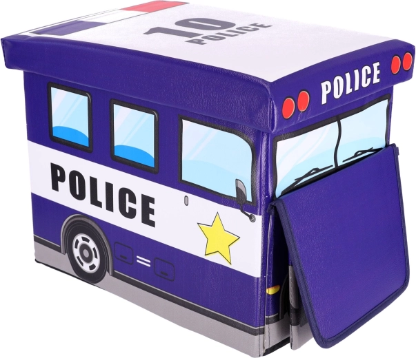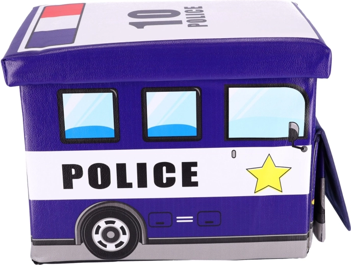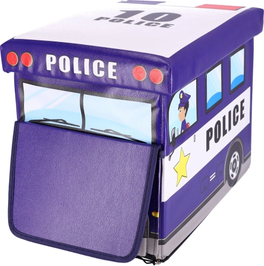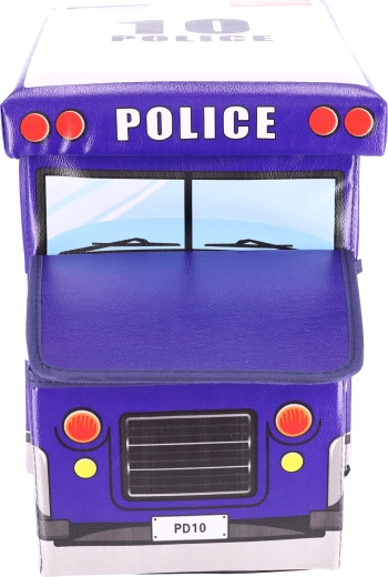Tekstilinė danga su užrašu POLICE atrodo žaismingai ir kartu yra lengvai valoma. Sulankstomas dizainas taupo vietą – sulanksčius dėžę galima laikyti po lova ar spintoje. Idealiai tinka kasdieniam daiktų laikymui ir skatina vaikų vaizduotę policijos tema.