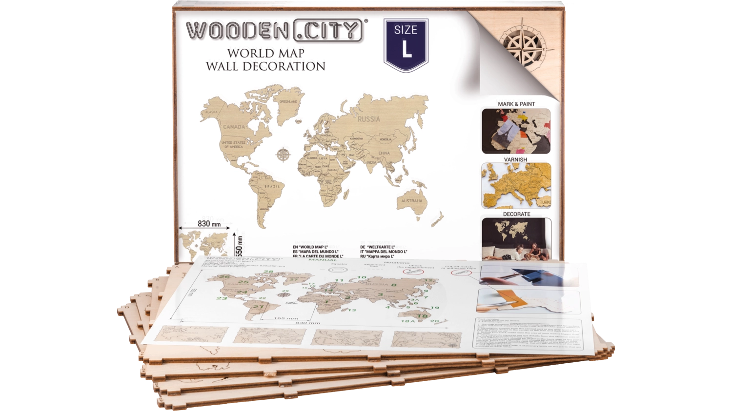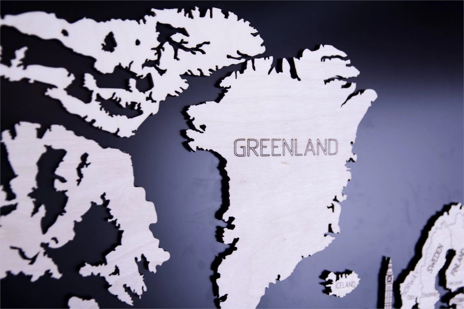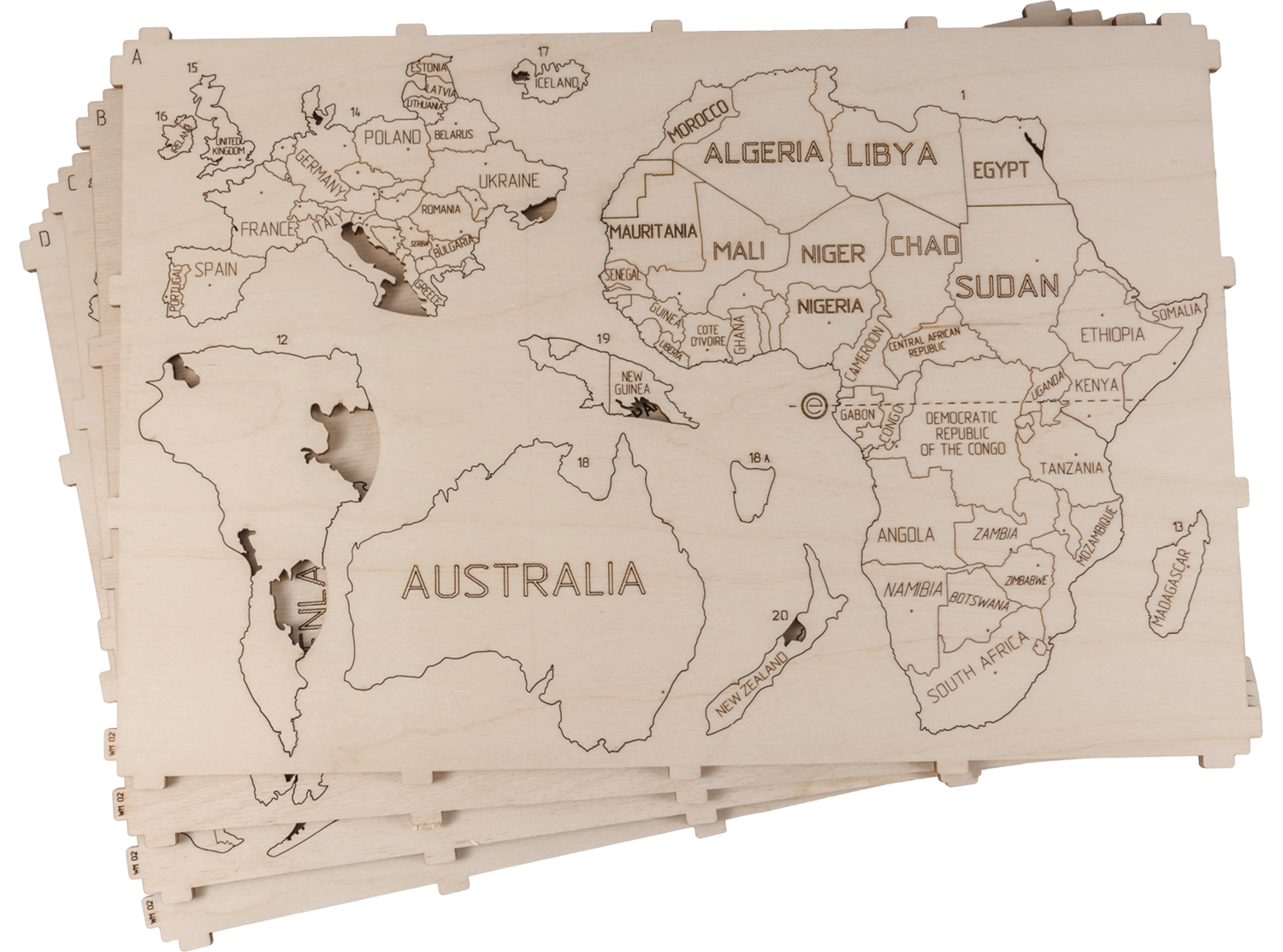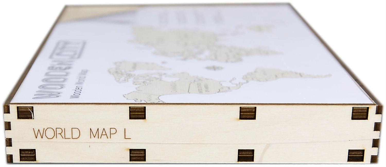Žemėlapis išpjaustytas iš beržo faneros, kuri interjerui suteikia natūralią ir elegantišką išvaizdą.