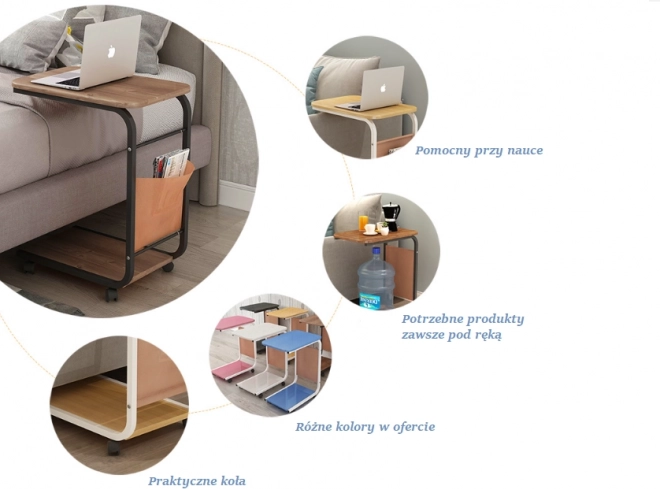 Elegantiškas ir funkcionalus sprendimas svetainei, miegamajam ir biurui. Minimalistinis stalelis ant ratukų pasižymi stabilia konstrukcija, paprasta priežiūra ir greitu surinkimu. Dėl sumanios formos jį galite iš dalies pakišti po baldais ir turėti patogų darbo ar pasidėjimo paviršių tiesiog šalia.