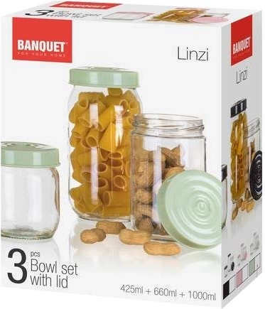 Praktiškas trijų stiklinių indų LINZI rinkinys, kurio talpos 425 ml, 660 ml ir 1000 ml, puikiai tinka maisto laikymui – nuo prieskonių ir makaronų iki cukraus. Kiekvienas indas turi sandariai užsidarantį dangtelį granito dekoro, kuris padeda išlaikyti turinį šviežią ir apsaugotą. Atsparus stiklas, stilinga granito išvaizda ir praktiški dydžiai paverčia LINZI rinkinį elegantišku kiekvienos virtuvės akcentu iš BANQUET prekės ženklo.