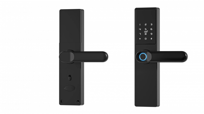Sustiprinkite savo namų saugumą su nauja išmania spyna. Valdykite prieigą prie savo buto ar darbo vietos iš bet kur! Tvirta durų rankena su integruotu pirštų atspaudų skaitytuvu palengvina prieigos valdymą.