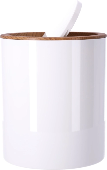 Kompaktiška šiukšliadėžė su atverčiamu, svyruojančiu dangčiu leidžia patogiai išmesti atliekas ir padeda sumažinti kvapų sklidimą. Minimalistinis dizainas tinka bet kuriam vonios kambariui.