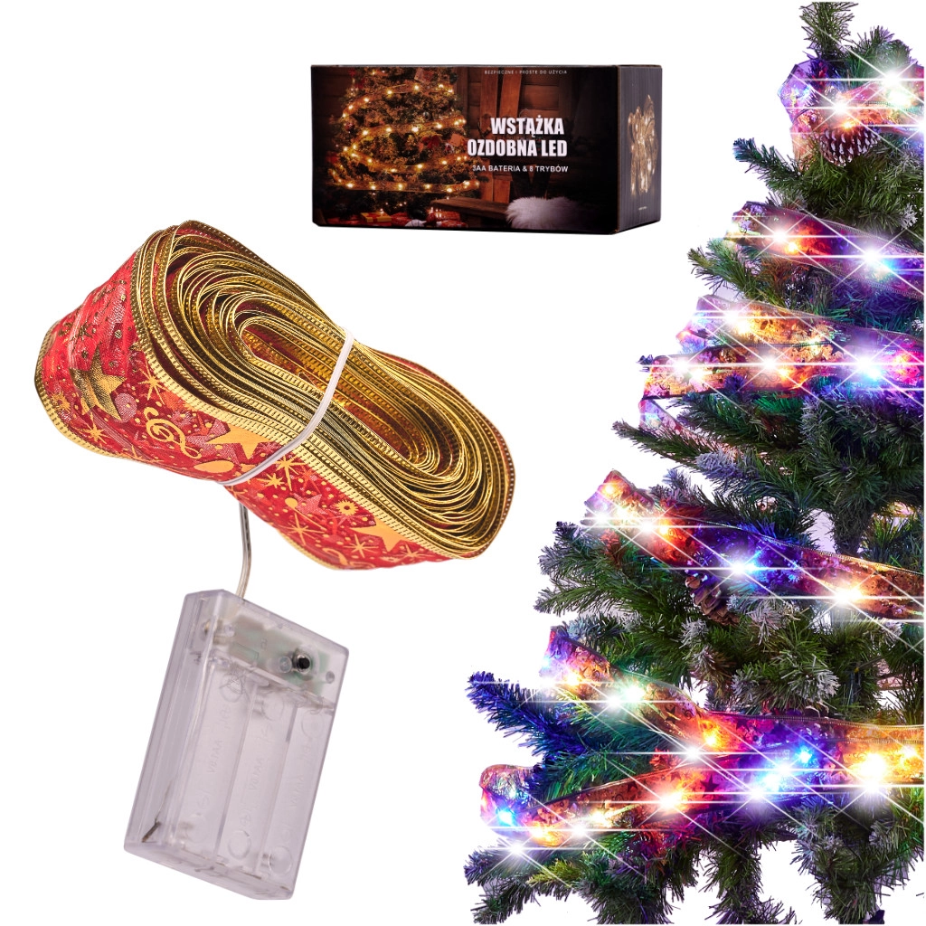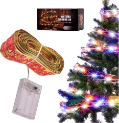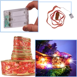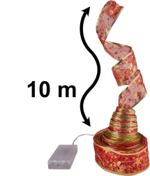 Ši kalėdinė juostelė derina dekoratyvią išvaizdą su šviesos efektu. Auksinis–raudonas juostos takelis su integruotomis LED lemputėmis tolygiai skleidžia švelnią, spalvingą šviesą per visą ilgį ir puikiai tinka eglutei, turėklams, židinio atbrailai bei šventinėms kompozicijoms. Maitinimas baterijomis leidžia naudoti neturint prieigos prie elektros lizdo.