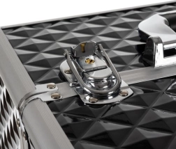 Juodo ir sidabrinio metalo derinys su geometriniais raštais suteikia lagaminui modernią išvaizdą ir kartu užtikrina jo patvarumą.