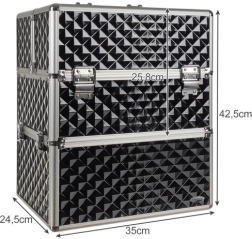 XL Soulima kosmetikos lagaminas sukurtas taip, kad atitiktų šiuolaikinės moters poreikius, ieškančios patogaus ir stilingo būdo susitvarkyti savo kosmetikos ir asmeninius reikmenis. Jis pagamintas iš kokybiško plastiko ir metalo, juoda ir sidabrinė spalvos suteikia elegantišką įvaizdį.