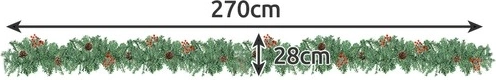 Elegantiška 270 cm ilgio kalėdinė girlianda su tankia spygliuočių žaluma, natūraliomis kankorėžiais ir raudonomis uogomis sužibės jūsų namuose dėl šiltos LED apšvietos. Ji lengva, formuojama ir patvari, lengvai pritvirtinsite prie turėklų, židinio atbrailos ar durų. 50 LED diodų, maitinamų baterijomis, suteiks jaukią šventinę atmosferą be poreikio lizdui.