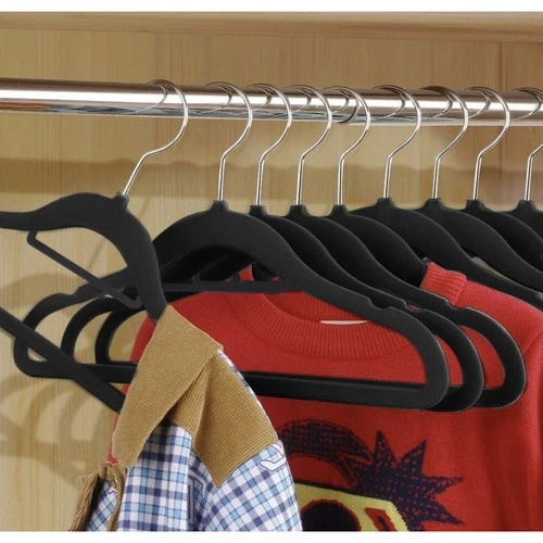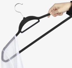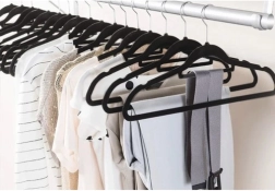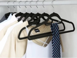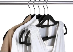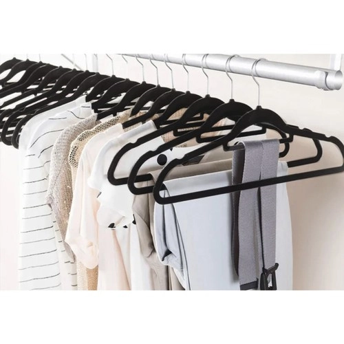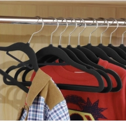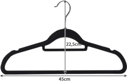 - Aukštos kokybės medžiaga: Pakabos pagamintos iš plastiko ir padengtos švelniu velūru, kuris apsaugo nuo drabužių slydimo.