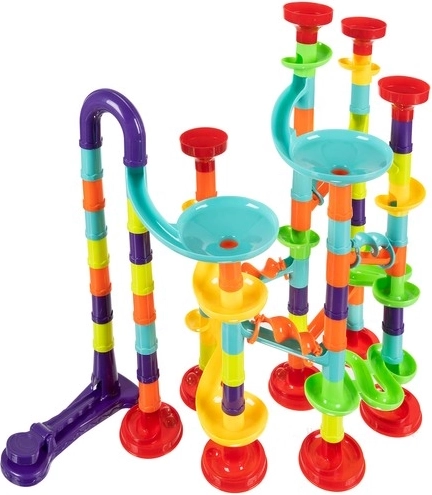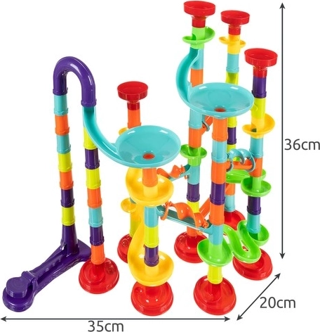 Susikonstruokite savo 3D rutulinę trasą iš net 113 dalių ir leiskite 30 rutuliukų lenktyniauti spalvotais vamzdžiais, piltuvėliais ir rampomis. Dalys lengvai ir intuityviai jungiasi, todėl vaikai gali greitai keisti maršrutus ir lavinti kūrybiškumą, erdvinį mąstymą bei smulkiąją motoriką.