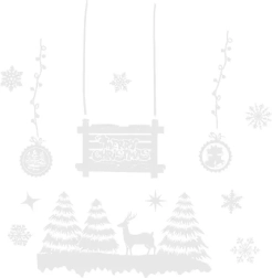 Rinkinyje rasite pamėgtus motyvus: kalėdinę eglutę, elnius, sniego senį, kabančius burbulus, snaiges ir užrašą Merry Christmas. Dėl universaliai balto dizaino tinka bet kokiam interjerui ir vitrinoms, padeda kurti šventinę atmosferą viso Advento metu.