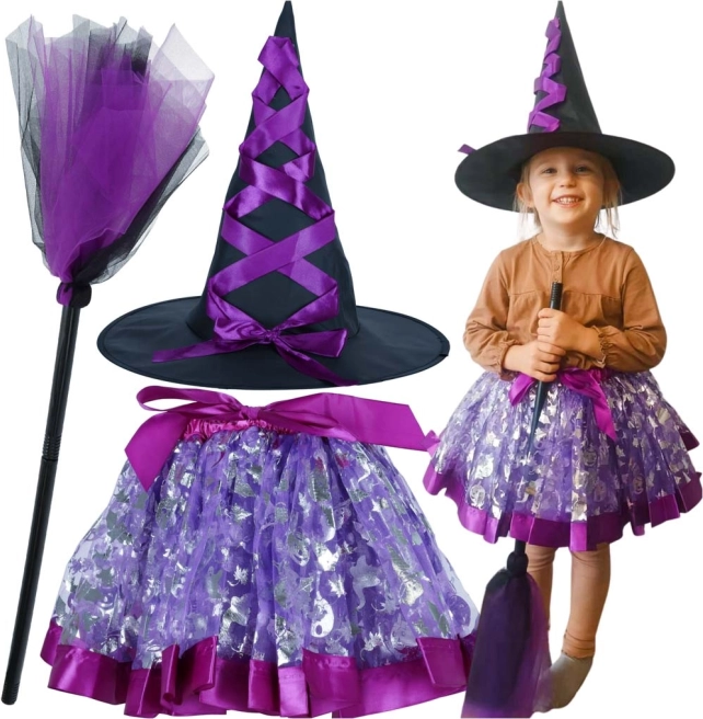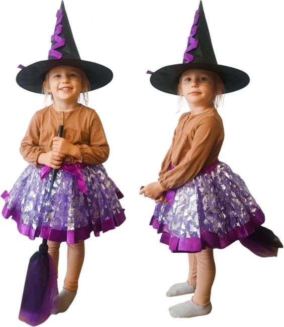 Aprenkite savo vaiką šiuo žavingu raganos kostiumo rinkiniu, kuriame yra dekoratyvinė skrybėlė, purpurinis sijonas su elastiniu juosmeniu ir išskirtinė šluota. Šis kostiumas puikiai tinka mokyklos karnavalams, teminiams renginiams ar smagiam vaidmenų žaidimui namuose.