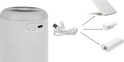 Integruotas RGB LED apšvietimas su spalvų keitimo galimybe kuria jaukią atmosferą ir gali veikti kaip švelni naktinė lemputė. Maitinimas vyksta per USB (USB‑C), tad drėkintuvą patogu naudoti prie nešiojamojo kompiuterio, automobilyje ar su išorine baterija. Žinoma, yra automatinis išsijungimas trūkstant vandens – maksimaliai saugiam naudojimui.