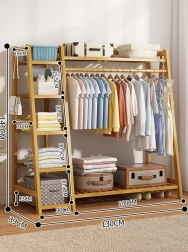 Elegantiškas ir funkcionalus bambukinis kabykla-stovas, 130 cm ilgio, puikiai tinka tvarkingam drabužių ir aksesuarų laikymui. Jis derina pakabą drabužiams su penkiomis praktiškomis lentynomis, todėl viskas po ranka – nuo paltų ir švarkų iki dėžių, rankšluosčių ar antklodžių. Natūralus bambukas suteikia interjerui šiltą, modernią išvaizdą ir kartu yra draugiškas aplinkai.