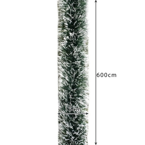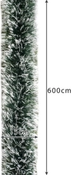 Ši dekoratyvinė girlianda realistiškai atkuria apsnigtų spyglių išvaizdą ir yra puikus pasirinkimas vidaus kalėdiniam puošimui. 6 metrų ilgis suteikia pakankamą padengimą eglutėms virš 220 cm, taip pat laiptų, palangių ar durų rėmų dekorui. Tanki ir sodri struktūra sudaro idealų foną švieselių girliandoms ir kitoms puošmenoms.