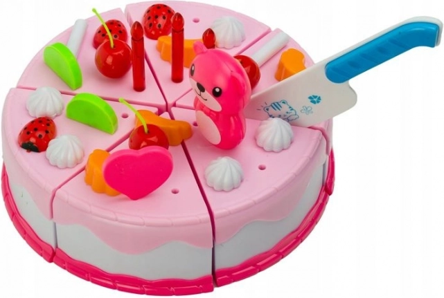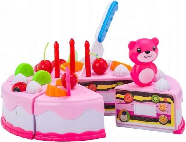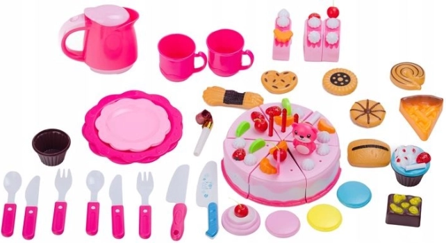 Išsamus 80 dalių gimtadienio torto rinkinys mažiesiems konditeriams suteiks valandas pramogų ir mokymosi. Dalys sujungtos lipniu velkro, todėl vaikai gali tortą pjaustyti peiliuku ir vėl sudėti. Taip pat yra šviečianti žvakutė, lėkštutės ir stalo įrankiai bei kavos rinkinys su puodeliais. Interaktyvus žaislas lavina smulkiąją motoriką, vaizduotę ir kūrybiškumą savarankiškai dekoruojant tortą vaisiais, žvakutėmis ir mielomis dekoracijomis.