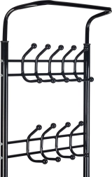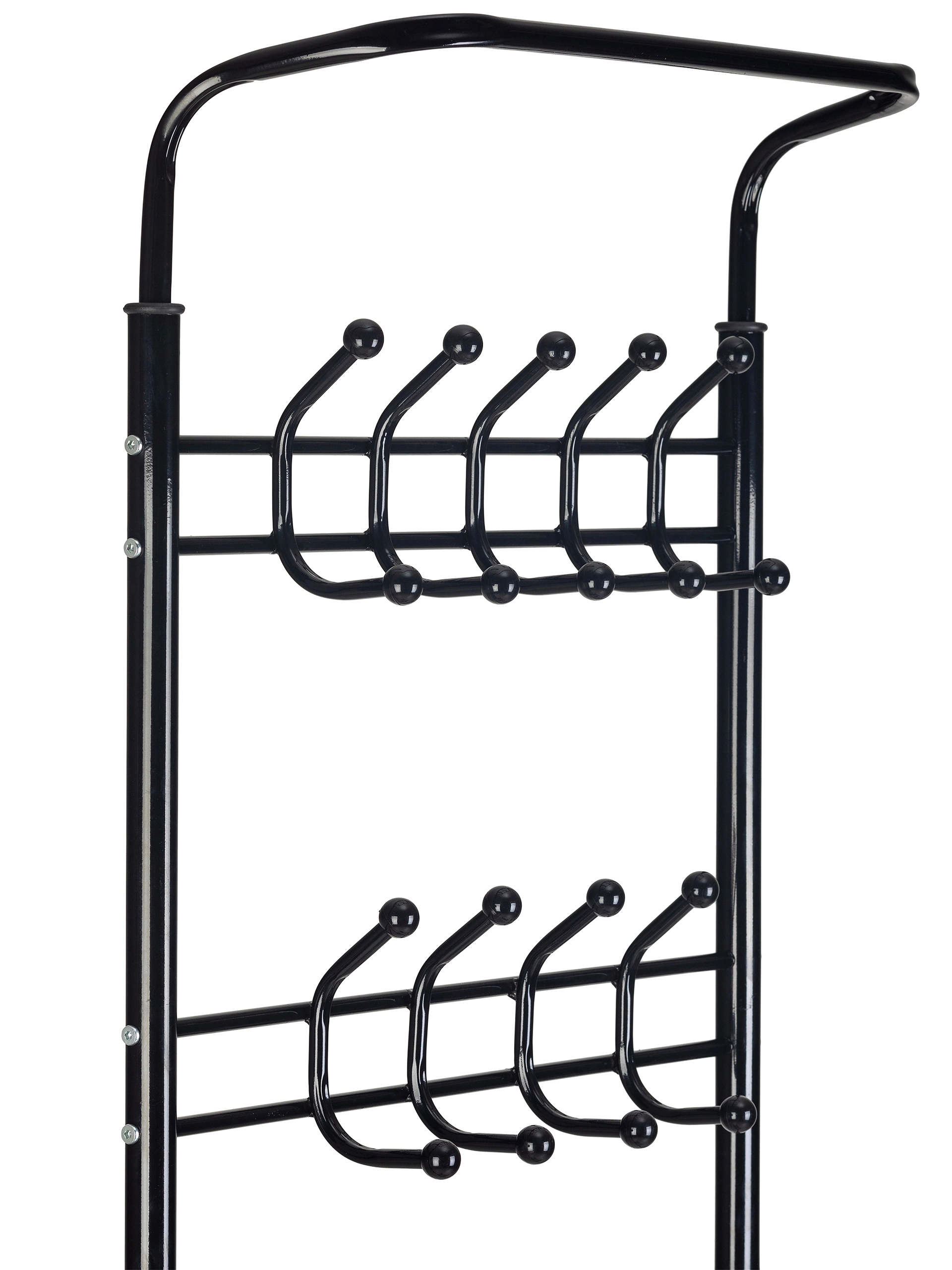 Šis funkcionalus drabužių stovas viršuje turi dvi eiles su 18 kabliukų, todėl idealiai tinka namų garderobams, biurams ar laukiamiesiems.