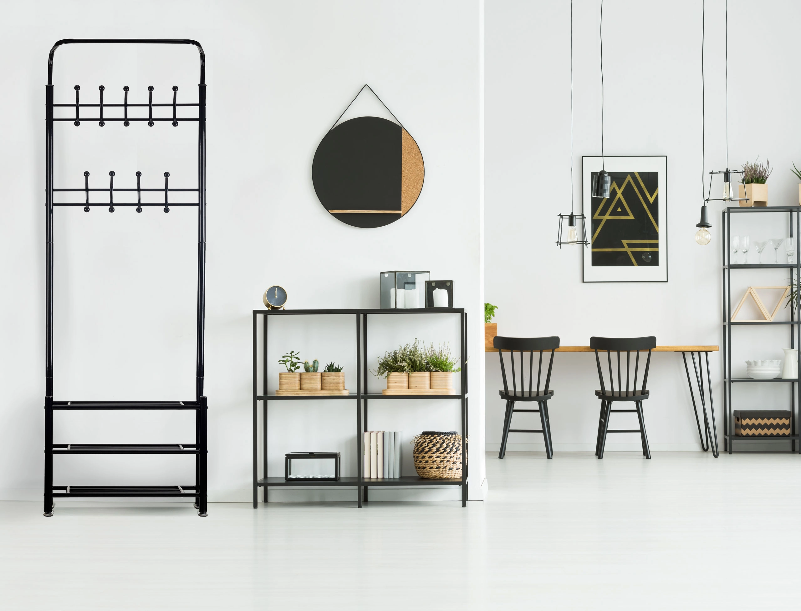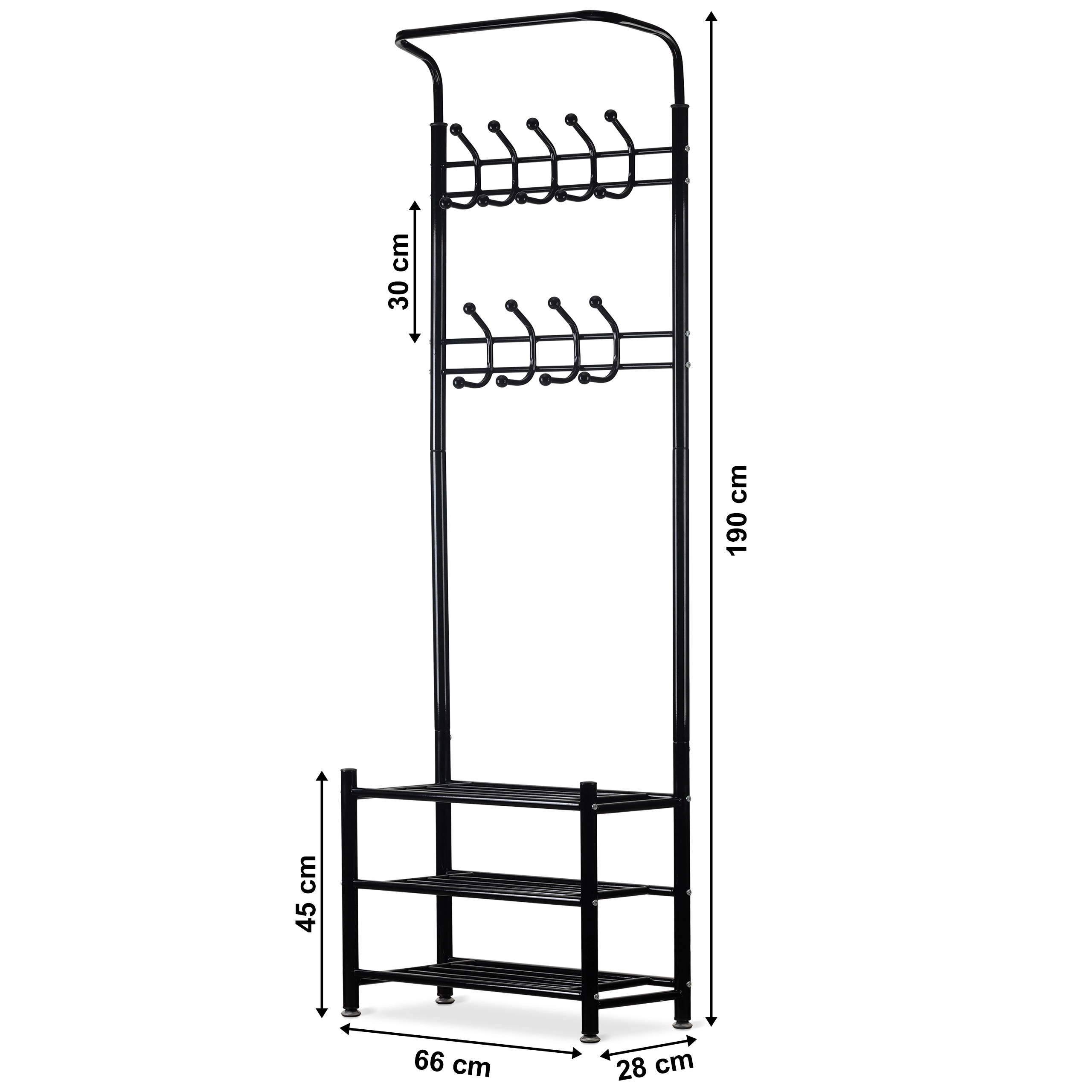 Siūlo 18 kabliukų ir 3 lentynas efektyviai drabužių ir avalynės organizacijai.