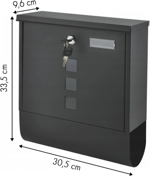 Pagaminta iš cinkuoto plieno, kuris užtikrina visišką apsaugą nuo korozijos. Dėžutės apačioje yra speciali vieta laikraščiams ir reklaminei medžiagai, todėl jūsų asmeninė korespondencija bus atskirta nuo reklamų.