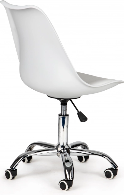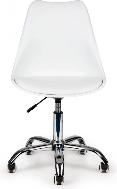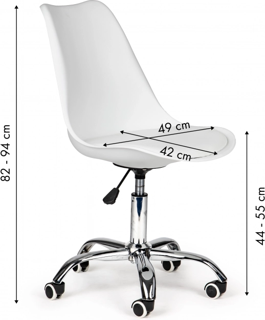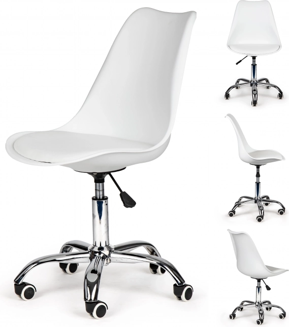 Minimalistinis baltas dizainas su chromuotais elementais tinka registratūroms, salonams ir namų darbo vietoms. Guminiai ratukai juda tyliai ir tausoją grindis, kad galėtumėte susitelkti į darbą be trikdžių.