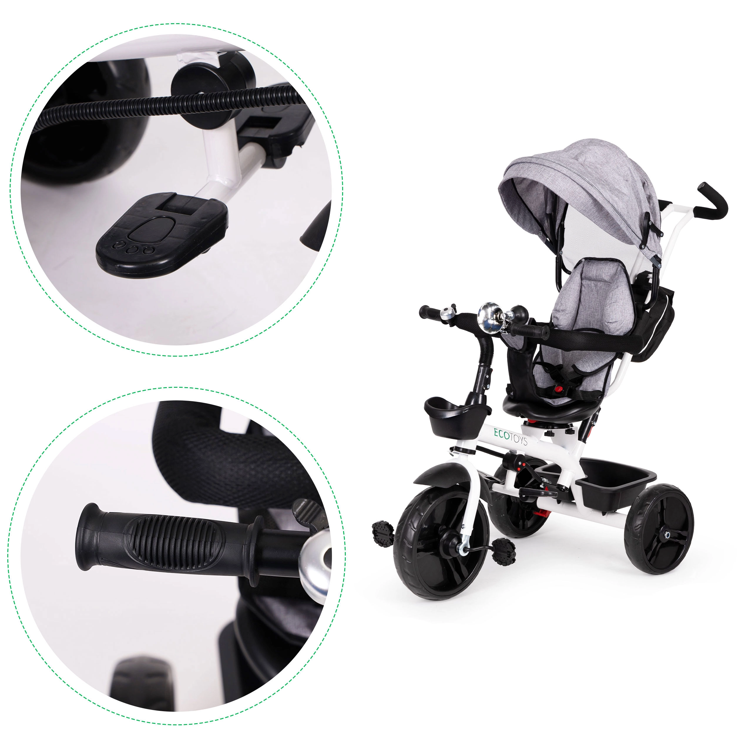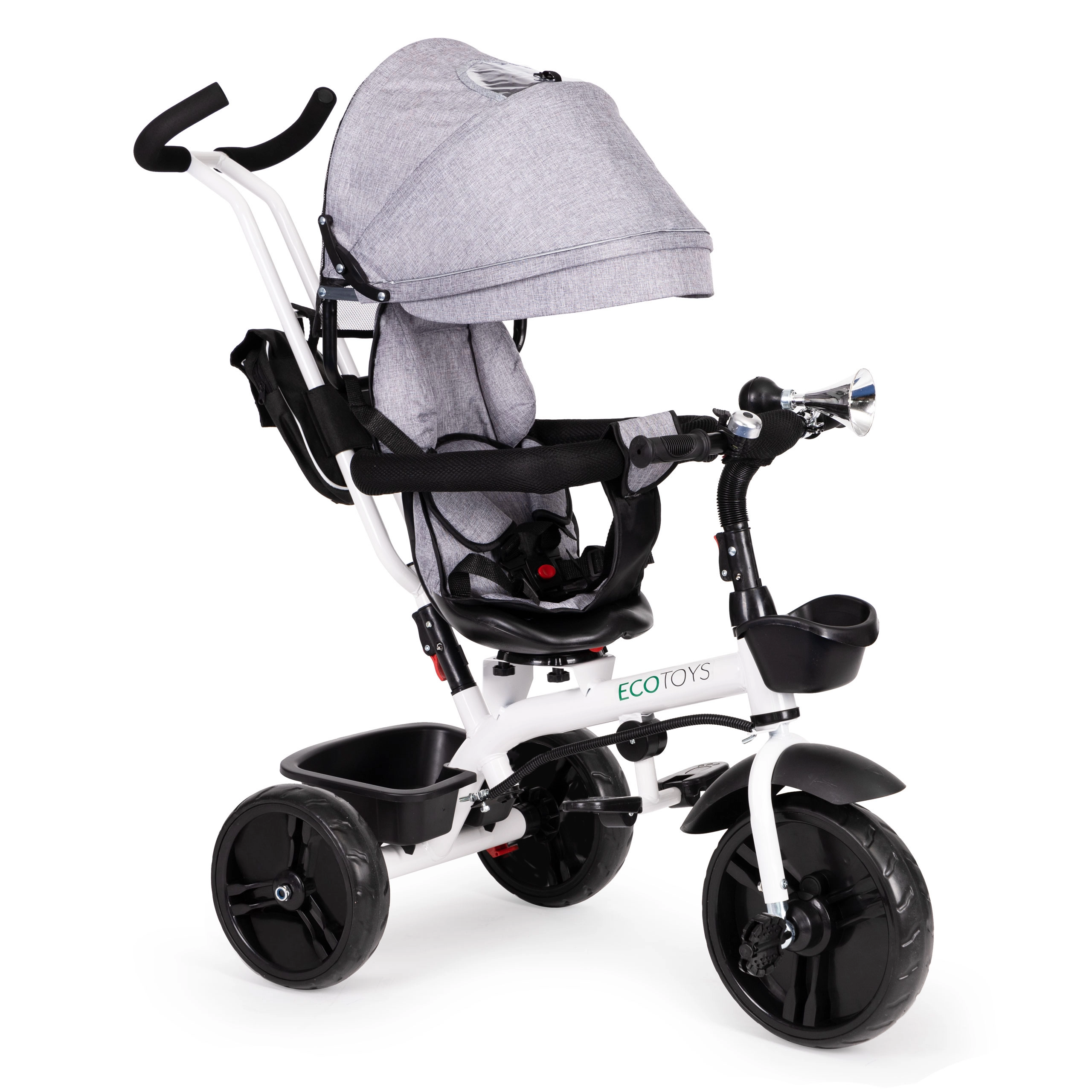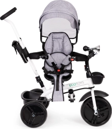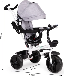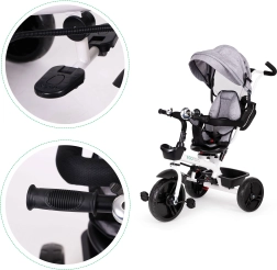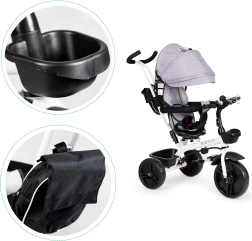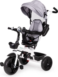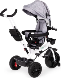 Šis daugiafunkcis triratukas auga kartu su jūsų vaiku: nuo režimo su tėvų valdymu iki savarankiško važiavimo. 360° pasukama sėdynė leidžia nustatyti padėtį veidu į tėvus geresniam kontaktui arba važiavimo kryptimi smalsiems tyrinėtojams. Paminkštinta sėdynė, 5 taškų saugos diržas ir apsauginė juosta suteikia užtikrintumo, o reguliuojamas stogelis saugo nuo saulės ir lengvo lietaus.