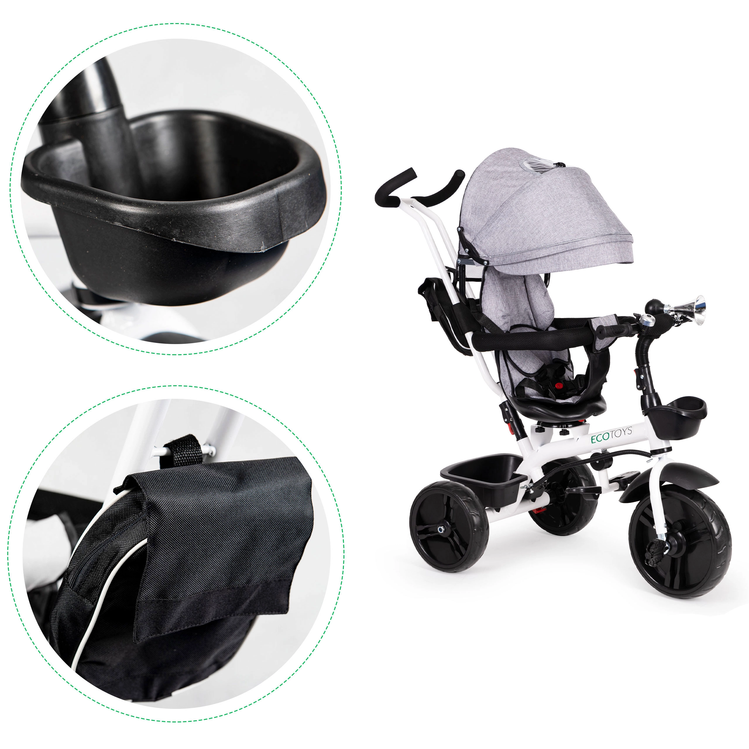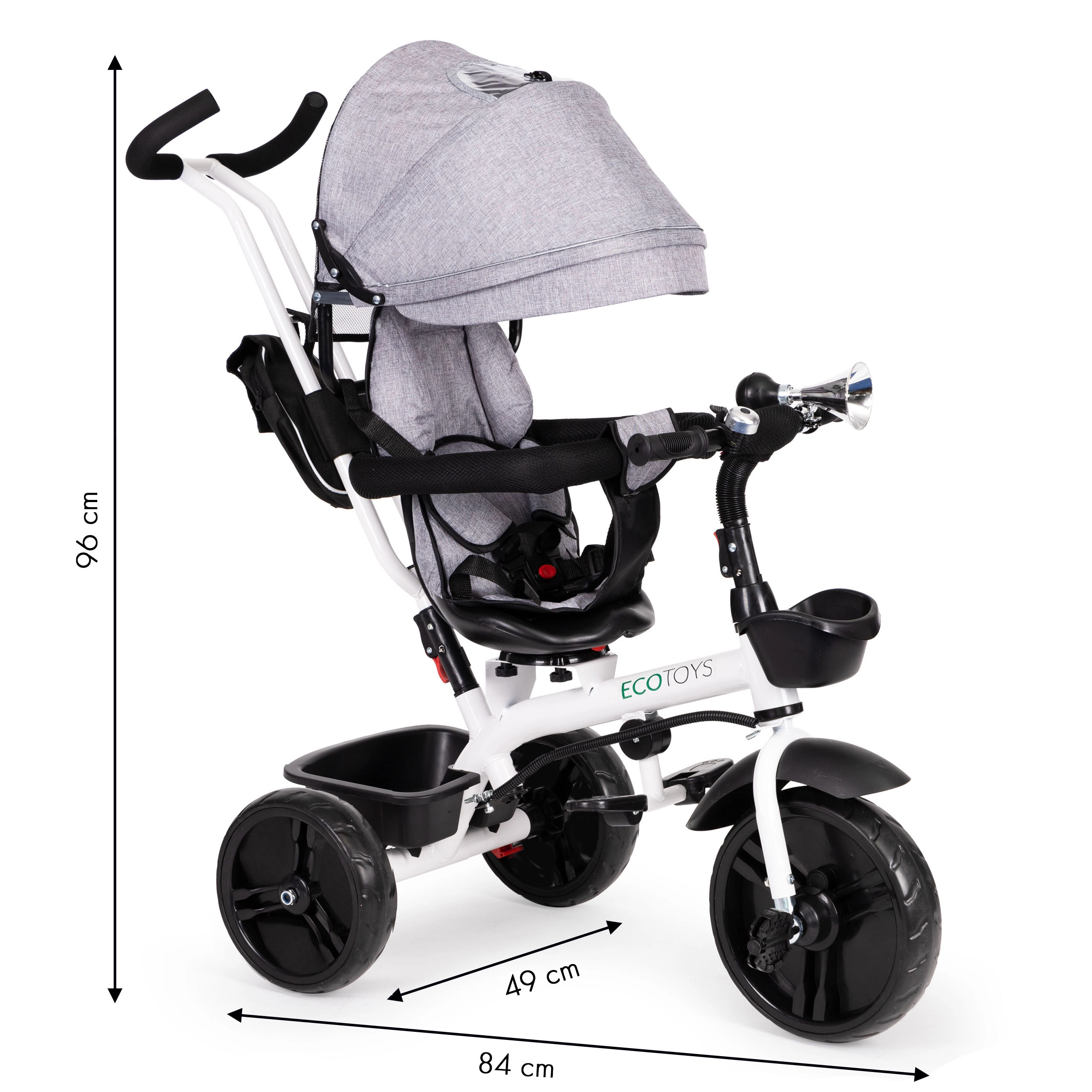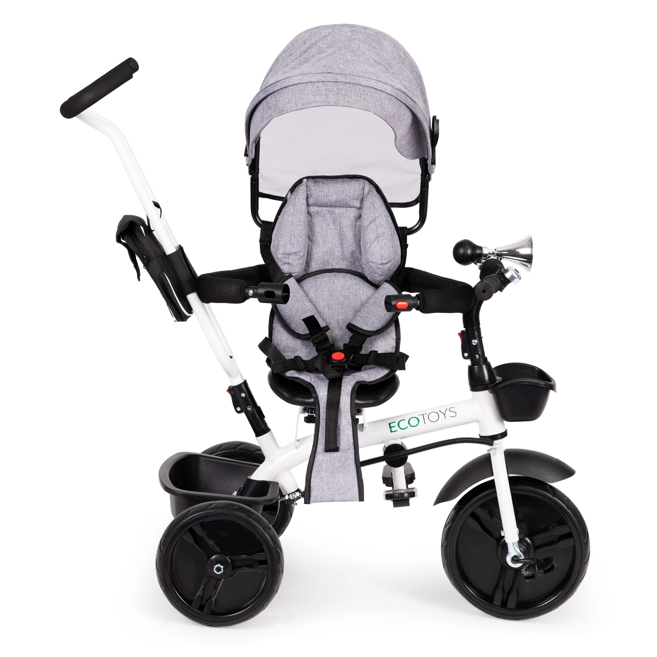 Šis daugiafunkcis triratukas auga kartu su jūsų vaiku: nuo režimo su tėvų valdymu iki savarankiško važiavimo. 360° pasukama sėdynė leidžia nustatyti padėtį veidu į tėvus geresniam kontaktui arba važiavimo kryptimi smalsiems tyrinėtojams. Paminkštinta sėdynė, 5 taškų saugos diržas ir apsauginė juosta suteikia užtikrintumo, o reguliuojamas stogelis saugo nuo saulės ir lengvo lietaus.