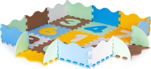Dalis dėliojamos kaip dėlionė ir leidžia sukurti įvairias formas bei praktinį aptvarą, kuris neleidžia žaislams išsivolioti už ribų. Išimami skaičiai padeda vizualiniam mokymuisi, lavina smulkiąją motoriką ir vaizduotę – iš dalių galima konstruoti paprastas 3D konstrukcijas, tokias kaip kubai ar bokštai.