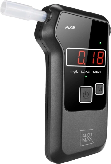 AlcoMax AX9 – patikimas elektrocheminis alkoholio matuoklis, užtikrinantis didelį matavimo tikslumą iki 0,001 % BAC. Įrenginys turi paskutinių 20 matavimų atmintį ir įsijungia per 5 sekundes.