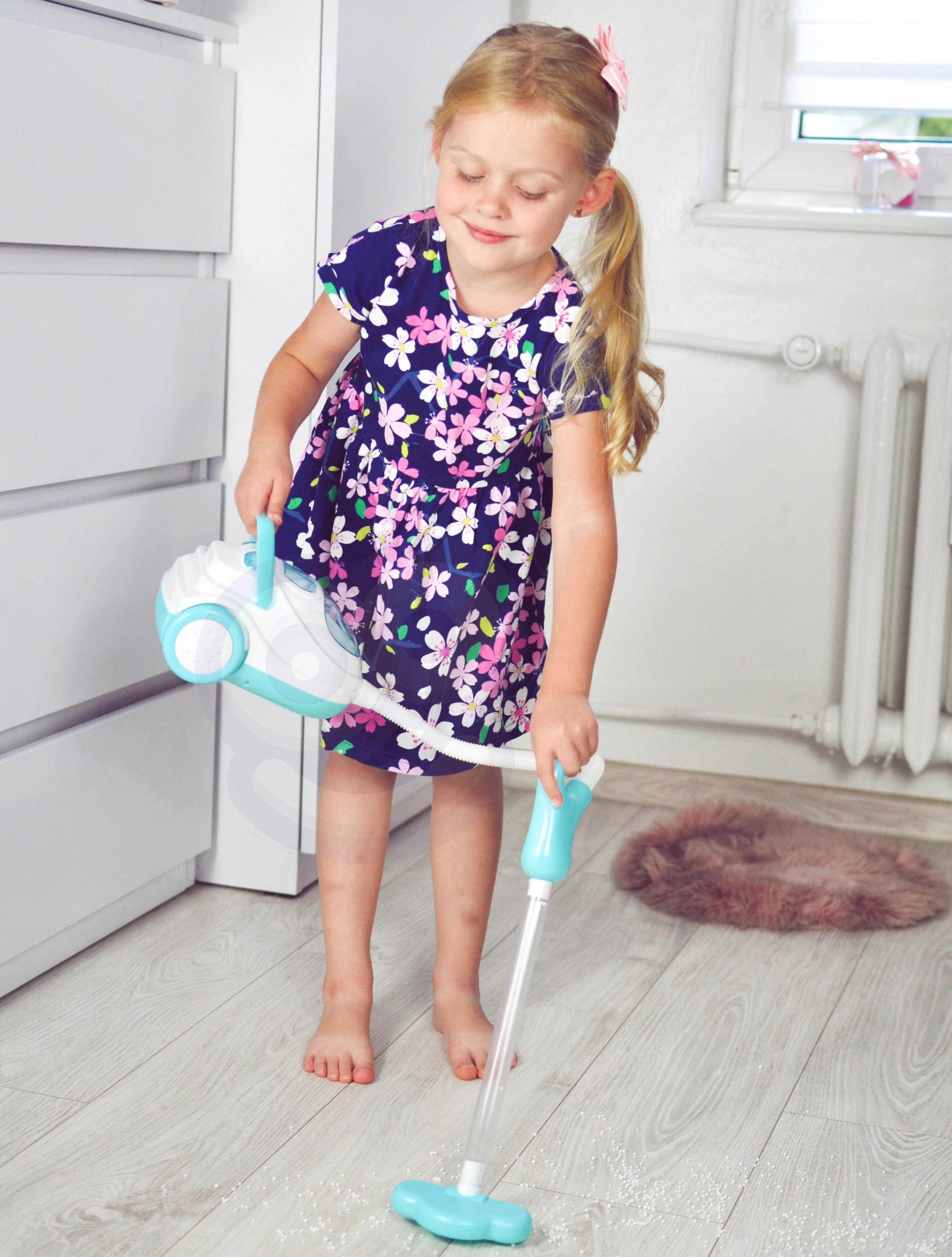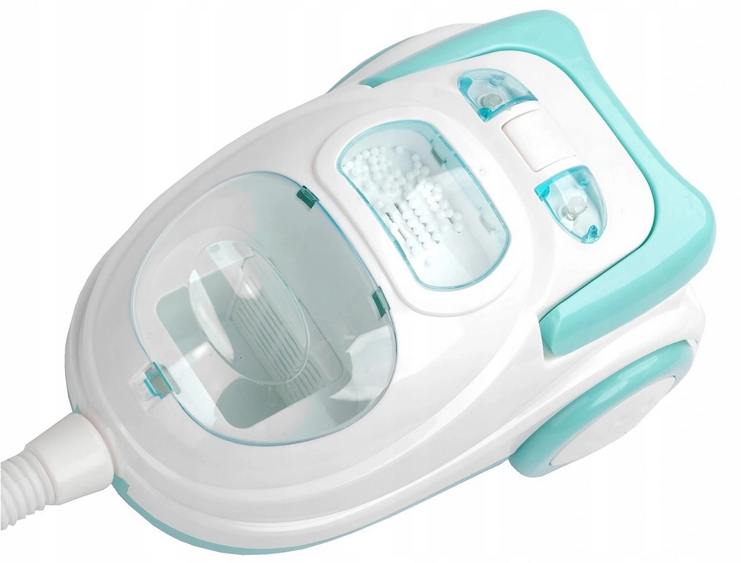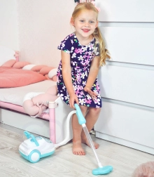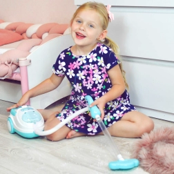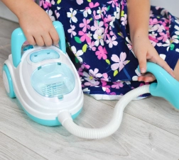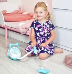Šis mėlynas-baltas vaikiškas dulkių siurblys ištikimai atkuria tikrą buitinį prietaisą – įjungus jis šviečia, skleidžia realistiškus garsus ir dėl siurbimo funkcijos gali įtraukti pridėtas polistireno granulės. Puikiai tinka vaidybiniams žaidimams, skatina atsakomybę ir žaismingai moko vaikus palaikyti tvarką.