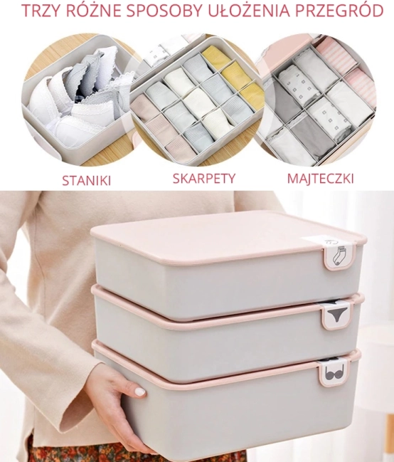 Ieškote paprasto būdo sutramdyti netvarką stalčiuose? Rožinis organizatorius su 10 atskirų skyrelių padės atskirti kojines, kelnaites, kaklaraiščius ar šalikus taip, kad visada akimirksniu rastumėte, ko reikia. Dėl praktiško dangtėlio viskas liks švaru ir apsaugota nuo dulkių.