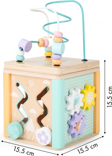 Medinis lavinamasis kubas Ecotoys sukurtas taip, kad padėtų jūsų vaikui harmoningai vystytis. Kiekviena kubo sienelė turi skirtingą funkciją, suteikiančią naujų ir įdomių galimybių kasdienei veiklai. Šis žaislas lavina ne tik rankų miklumą, bet ir formų atpažinimą bei loginį mąstymą.