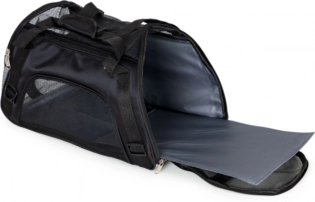 Pristatome universalią ir patvarią kelioninę naminių gyvūnų pernešimo rankinę, idealią kelionėms. Puikus dizainas užtikrina didesnį komfortą ne tik gyvūnui, bet ir jo šeimininkui. Nešama ant peties arba rankoje, o dėl nuimamo pamušalo krepšį lengva išvalyti.