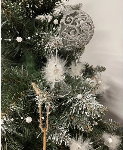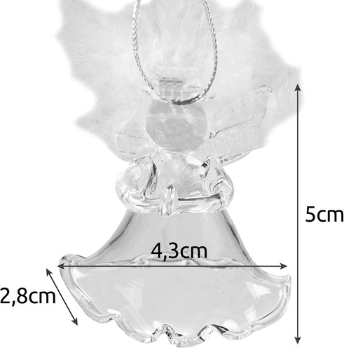 Permatomo stiklo angelėlių rinkinys su plunksniniais sparnais suteikia detalią estetiką ir švelnumą. Jie idealiai tinka papuošti kalėdinę eglutę.