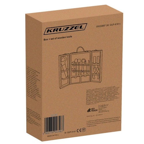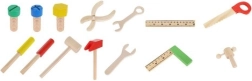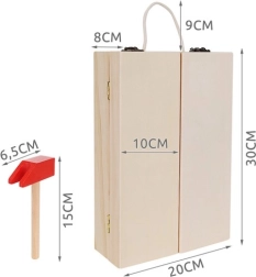 Medinis įrankių rinkinys su lagaminėliu – puikus žaislas mažiesiems meistrams. Lagaminėlis turi aiškius skyrius visiems įrankiams sudėti ir yra lengvai nešiojamas dėl patogios rankenėlės.