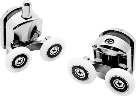 Pakuotėje rasite 4 viršutinius ir 4 apatinius dvigubus ratukus + 8 ribotuvus. Tinka tiesiems ir pusapvaliams profiliams bei įvairių tipų kabinoms.