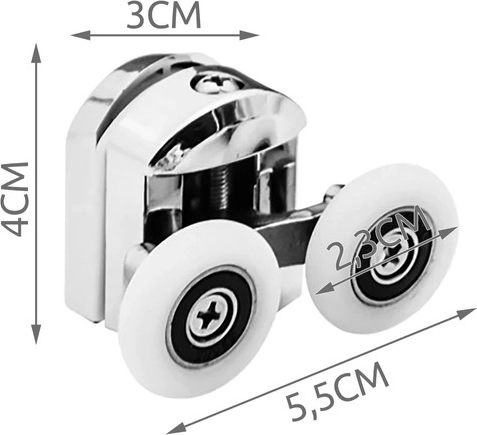 Šis universalus dušo kabinų važiuoklės rinkinys užtikrina sklandų judėjimą, patikimą užsidarymą ir mažesnį bėgelių dėvėjimąsi. Dvigubi ratukai su rutuliniais guoliais didina stiklo stabilumą ir mažina jo svyravimą. Dėl išverčiamos konstrukcijos ratukai prisitaiko prie profilio formos – tinka kvadratinėms ir pusapvalėms kabinoms.
