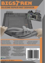 Kilimėlis atsparus aukštai temperatūrai, todėl patikimai apsaugo darbo stalą litavimo ar darbo su karštu oru metu. Integruotos matavimo linijos cm ir coliais palengvina tikslų matavimą ir komponentų išdėstymą. Silikonas taip pat atsparus cheminėms medžiagoms ir lengvai valomas.