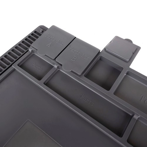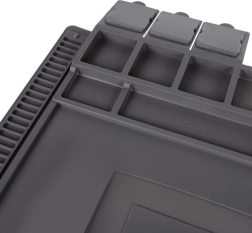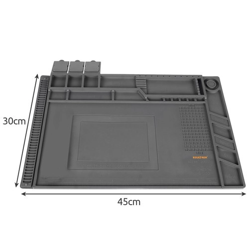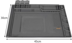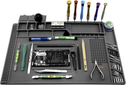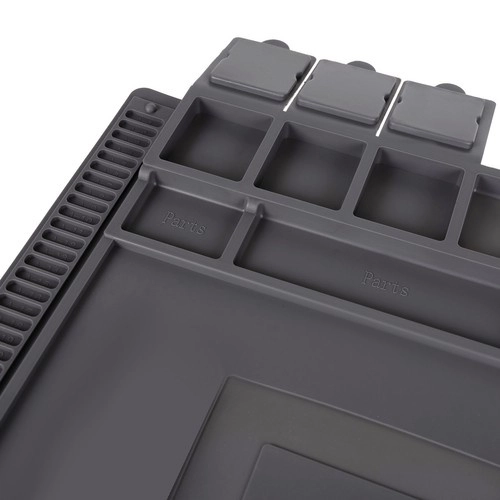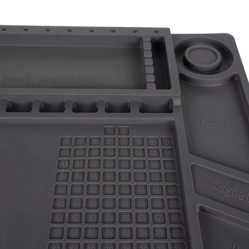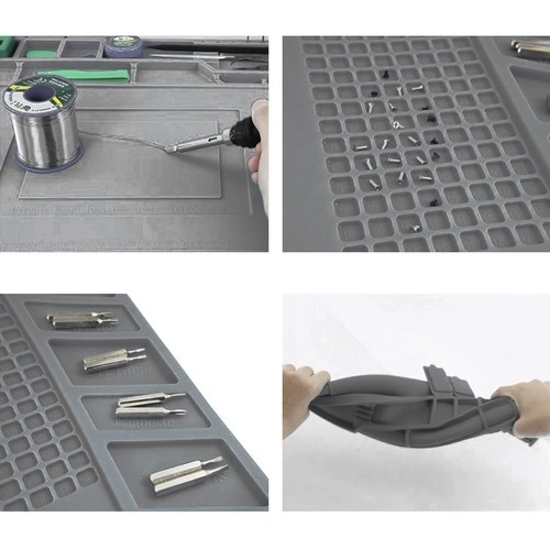 Šis daugiafunkcis silikoninis servisinis kilimėlis idealus telefonų, nešiojamųjų kompiuterių remontui ir tiksliam litavimui. Dėl 4 magnetinių kišenių, suskirstytų skyrelių ir specialių vietų atsuktuvams visos smulkios dalys bei įrankiai visada bus po kontrole. Neslystantis paviršius išlaiko viską vietoje net atliekant sudėtingesnes operacijas.