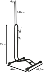Stovas suderinamas su dauguma dviračių (miesto, trekingo, kalnų) iki 27,5" ratų skersmens ir 6,5 cm padangos pločio. Stabili bazė ir dviračiui skirti kabliukai išlaiko dviratį vertikalioje arba horizontalioje padėtyje, taip sutaupant vertingos vietos garaže ar rūsyje.