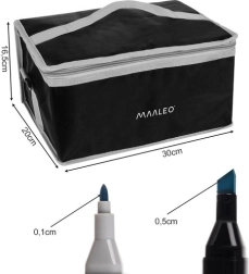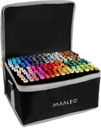 Atraskite visapusišką meninį sprendimą eskizams, letteringui ir spalvotoms iliustracijoms. Rinkinys MAALEO siūlo net 168 sodrius atspalvius su dvipusiais galiukais – plonu apvaliu tikslioms linijoms ir nuožulniu kirptu plotams bei šešėliavimui. Alkoholinis rašalas greitai išdžiūsta ir neteplioja, spalvos atsparios blukimui ir vandeniui.