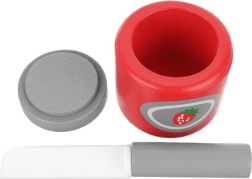 Valdymas paprastas ir smagus – sukamasis „temperatūros“ reguliatorius ir svirtis paleidžia skrudinimą, po akimirkos skrebučiai patys iššoka. Rinkinys skatina vaizduotės raidą, rankenos–akies koordinaciją ir įgūdžius, taip pat puikiai paruošia prieš tikrą pjaustymą ir maisto ruošimą.