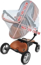 Dėl elastingo krašto tinklelis lengvai tvirtinamas ir prisitaiko prie beveik bet kokio vežimėlio tipo. Smulkus tinklelis efektyviai saugo jūsų vaiką nuo uodų ir kitų vabzdžių, nevaržydamas oro cirkuliacijos.