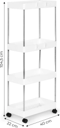 Plastikinė lentyna voniai ar virtuvei – puikus pasirinkimas kiekvienam, ieškančiam funkcionalumo ir lengvumo viename. Keturios lentynos suteikia daug laikymo vietos įvairiems daiktams – nuo kosmetikos iki rankšluosčių ir higienos priemonių.