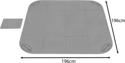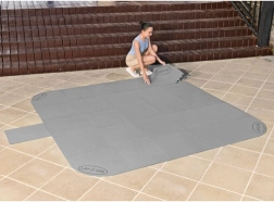 Komplekte taip pat yra atskiras kilimėlis pompai, kuris užtikrina stabilų ir saugų šildymo/filtravimo įrenginio pastatymą. Jei turite didesnę sūkurinę vonią nei 196 × 196 cm, paprasčiausiai sujunkite kelis rinkinius ir gausite reikiamą apsauginį plotą.