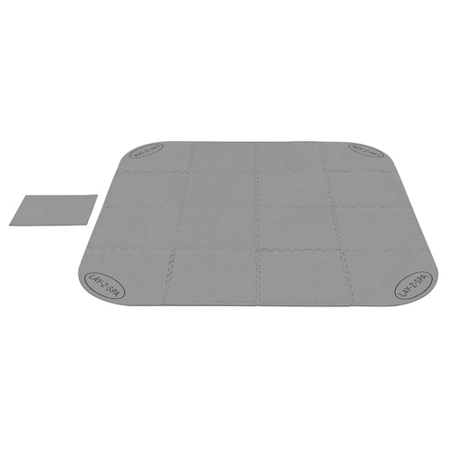 Praktiškas Bestway apsauginis kilimėlis LAY‑Z‑SPA sūkurinėms vonioms saugo dugną nuo pažeidimų ir nešvarumų, gerina stabilumą ir suteikia papildomą šiluminę izoliaciją. Rinkinį sudaro 17 dalių, kurias lengva sudėti į kvadratą 196 × 196 cm, taip pat įtraukta stačiakampė pompos pagrindo pagalvėlė. Suderinama su visais LAY‑Z‑SPA modeliais, yra galimybė išplėsti sujungiant kelis rinkinius.