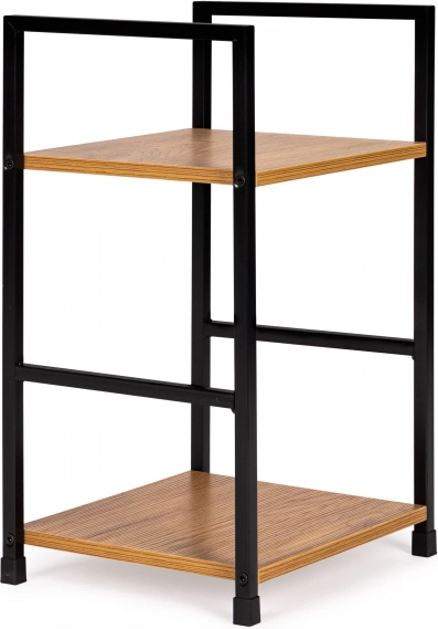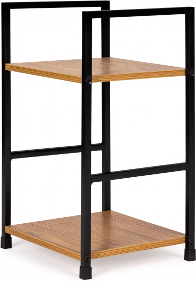 Įneškite į interjerą gryno industrinio stiliaus. Šis minimalistinis stelažas, 48,5 cm aukščio ir su dviem 23,5 × 29 cm lentynomis, suteiks vietos knygoms, dekoracijoms, augalams ir naktinei lempai. Tvirtas milteliniu būdu dažytas metalas kartu su MDF lentynomis su medžio dekoru garantuoja patvarumą ir laikui nepavaldžią išvaizdą.