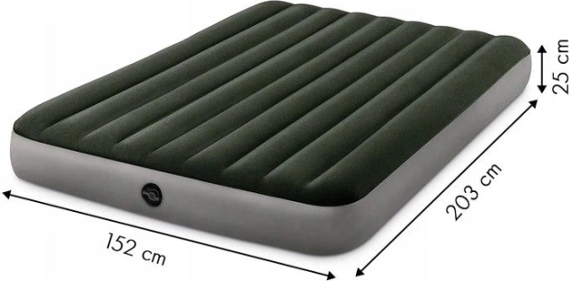 Patogus pripučiama čiužinys INTEX dviem asmenims siūlo 203 × 152 × 25 cm matmenis ir greitą paruošimą dėl komplekte esančio elektrinio siurblio. Malonaus veliūro paviršius yra atsparus vandeniui ir švelnus liesti, konstrukcija su Dura-Beam Fiber technologija užtikrina stabilumą ir stuburo atramą. Idealu namų svečių apgyvendinimui ir stovyklavimui, su greitu pripūtimu ir išleidimu per Boston vožtuvą.