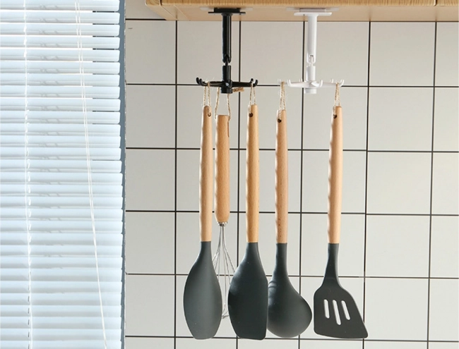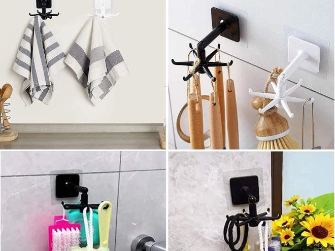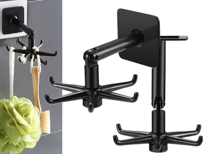 Kabliukų laikiklis pagamintas iš kokybiško plastiko ir sukurtas kaip universalus pakabinimo sprendimas ne tik virtuvės indams, bet ir vonios aksesuarams, pavyzdžiui, kempinėlėms ar rankšluosčiams. Dėl 360° besisukančio dizaino galite greitai ir patogiai pasiekti visus laikomus daiktus.