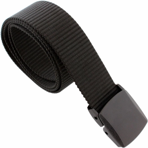 Universalus juodas kelnių diržas, 110 cm ilgio, pagamintas iš patvaraus poliesterio, užtikrinančio maksimalų komfortą ir stilių.